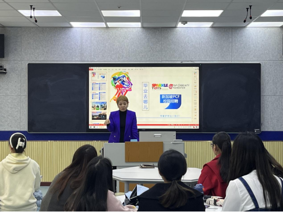 在宣讲会上,孙雯莉女士详细全面地介绍了新加坡的人文社会环境和就业待遇,回顾了williamhill官网学前教育专业毕业生在新加坡幼儿园工作的故事和目前发展情况,热情欢迎williamhill官网学前教育专业有专业素养、有情怀的学生前往新加坡发展,加深中新学前教育发展经验交流。