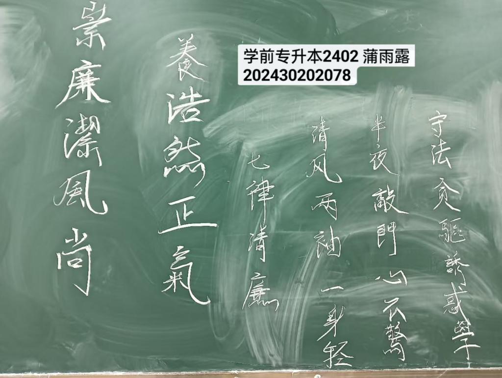 书法作为中华文化的瑰宝,承载着深厚的文化内涵和道德精神。廉洁文化通过书法作品得以生动展现,二者相辅相成,共同传递清正廉洁的价值观。下面是教院同学关于廉洁的三笔字,看他们如何将书法与廉洁相结合,体现教院同学对于廉洁的追求。