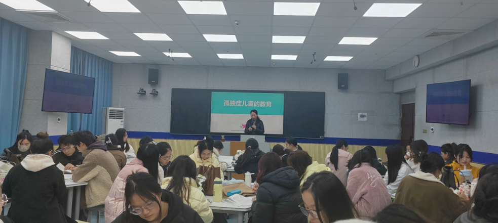 11月26日,我校兼职教师茅箭区快乐童年幼儿园李琴园长来到了学前教育专业学生的课堂,分别为学前专升本2401班和2402班分享了孤独症的相关理念与实践经验。