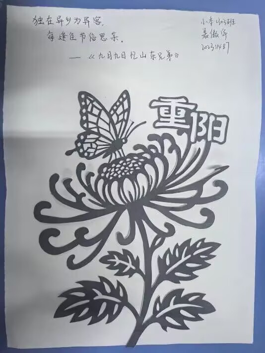 本次活动以手工创作为桥梁,让师生在裁剪、绘制间深入理解重阳文化。从剪纸的镂空艺术到手抄报的图文融合,同学们将登高、赏菊、孝亲等文化符号转化为创意表达,既展现了对传统民俗的认知,又赋予其当代艺术活力。
