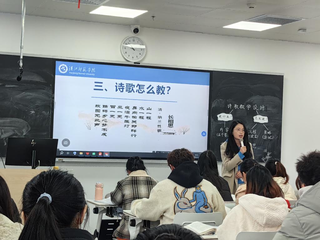 梁伟老师讲授的《小学语文课程与教学论》示范课以“任务驱动法”为核心,引导学生掌握诗歌教学的“六读法”——引读、朗读、译读、想读、品读、比读。通过精心设计的课堂任务,学生不仅深入理解诗歌内涵,还提升了自主探究和合作学习能力。诗歌教学不仅是知识的传递,更是情感的熏陶和思维的激发,任务驱动法能有效提升学生的课堂参与度,使语文教学更加生动、高效。