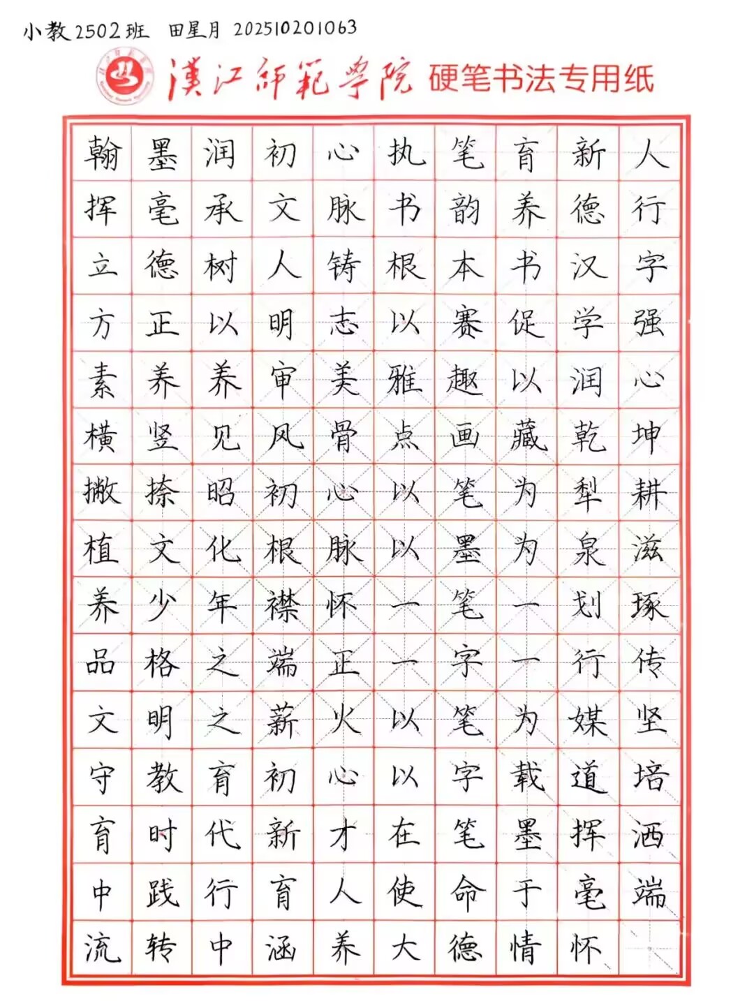 经学生报名、学院评比,小教专升本2504班付子怡等62名同学在三笔字大赛中脱颖而出,进入校级决赛环节。这些作品或许仍带着青涩,但每一笔都藏着对师范使命的理解,每一页都写着对文化传承的担当。今日以笔墨筑牢根基,明日携初心站上讲台 —— 这便是威廉希尔足球官网学子,用三笔字书写的师范答卷。