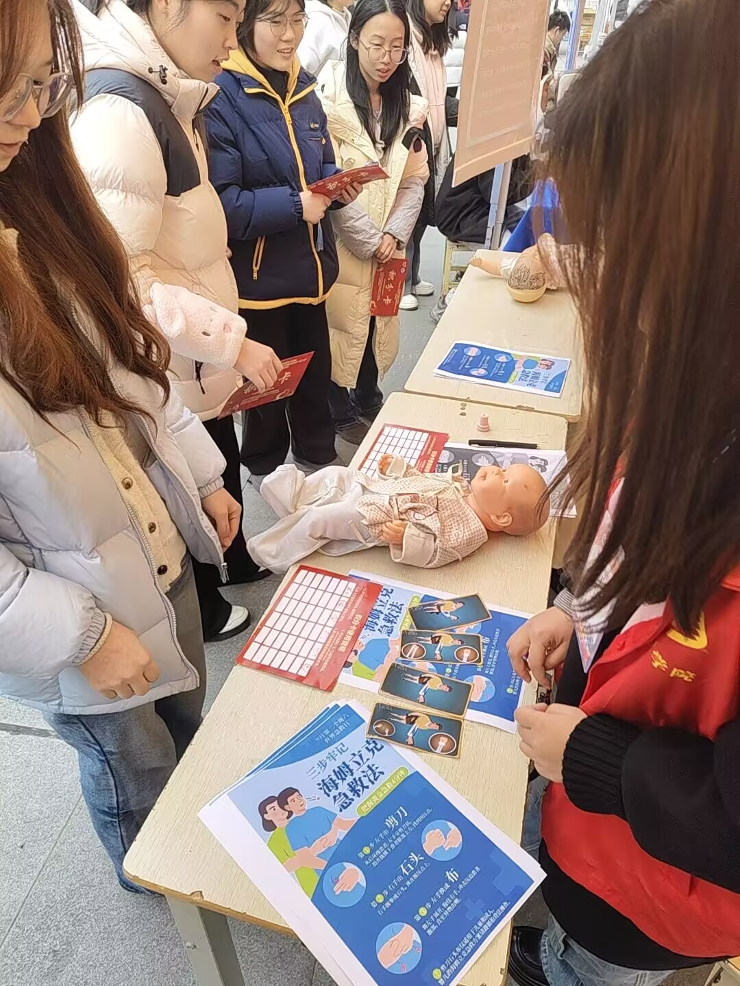 威廉希尔足球官网志愿服务展台围绕应急救护知识普及核心主题,精心开设海姆里克急救法科普与实操体验志愿服务项目。活动现场,志愿者们分工明确、耐心细致,通过理论讲解、案例分析、实操演练等多种形式,向在场参与者系统介绍海姆立克急救法的适用场景、操作要点与注意事项。针对不同年龄段人群的急救差异,志愿者们重点讲解并示范了一周岁以下婴儿与一周岁以上儿童及成人的不同施救手法,同时利用专业模拟人偶进行一对一指导,让每一位体验者都能亲手操作、切实掌握关键技能。